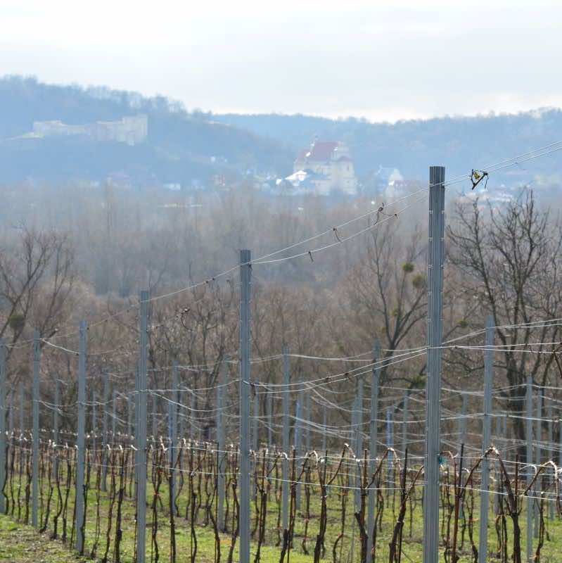 Winnica Widok zajmuje obszar 1.2 ha., na którym rośnie ponad 5000 krzewów winorośli. Właściciele, ze względu na szczególne warunki glebowe i położenie działki, postawili na klasyczne szczepy vitis vinifera (winorośl właściwa). Z odmian białych uprawiane są: Chardonnay, Riesling, Gewurztraminer a z czerwonych Pinot Noir, Zweigelt i Blaufrankisch. Gleba jest wapienna, kamienista a wśród kamieni można znaleźć skamieliny amonitów. Winnica ma korzystne nachylenie w kierunku południowo – zachodnim, co stwarza winorośli znakomite warunki wzrostu i dojrzewania. Szeroki rozstaw rzędów i silne wiatry zapewniają dobre przewietrzenie winnicy. Uprawę prowadzi się metodami tradycyjnymi: ręczne pielenie, przycinanie, zbiór i selekcja owoców.